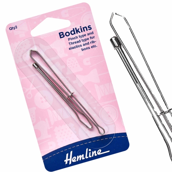 2 pack Bodkin Pinch and Thread Set. Two proged tweezers to hold tape, elastic or ribbon while inseryin or threading. One pinch type that holds firm. Thread bodkin is for threading ribbons, fine elastic and rouleau through casing and eyelets. Pinch bodkin grabs elastic & holds it securely until ready for release.